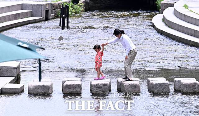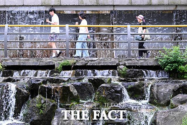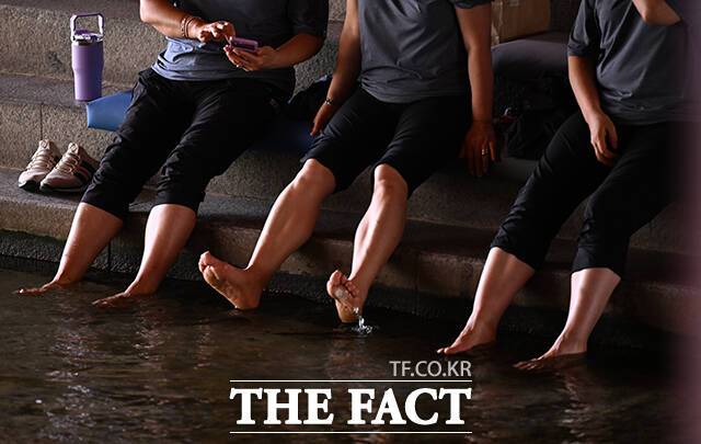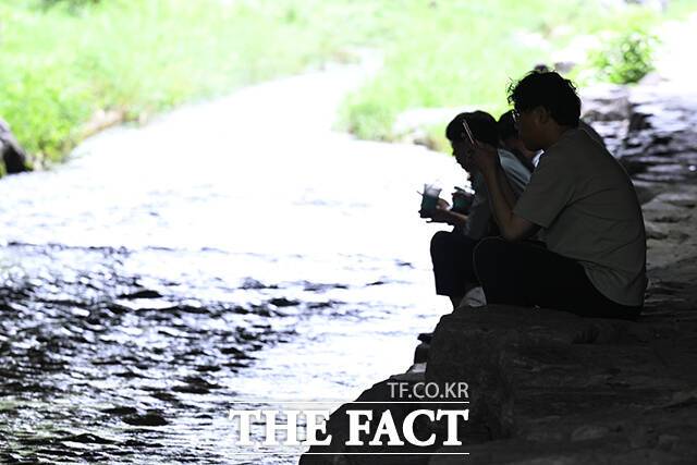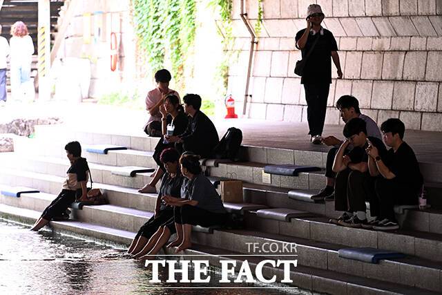 [더팩트ㅣ서예원 기자] 전국 대부분 지역에 폭염특보가 발효된 2일 오후 서울 종로구 청계천을 찾은 시민들이 다리 아래 그늘에서 더위를 식히며 휴식을 취하고 있다.