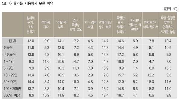 연구진은 "소규모 사업장에서 일하는 근로자들이 충분한 휴가를 보장받지 못하고 있는 현실을 반영한다"고 설명했다.