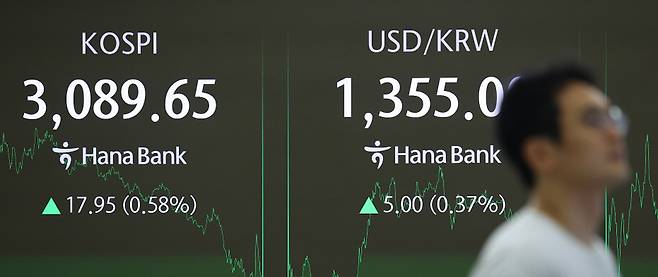 유가증권시장에서 외국인 투자자가 3360억원 순매도를 기록한 점이 원화 약세의 배경으로 꼽혔습니다.