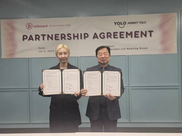 광고에이전시 전문기업인 에이전시 욜로(yolo)와 블록체인 기반 팬덤투표 플랫폼 ㈜사이버딜의 비트보드(bitboard)와 비트보드 운영사인 ㈜케이티오에스가 디지털 팬덤 비즈니스 혁신을 위한 전략적 업무협약을 맺었다고 2일 밝혔다.