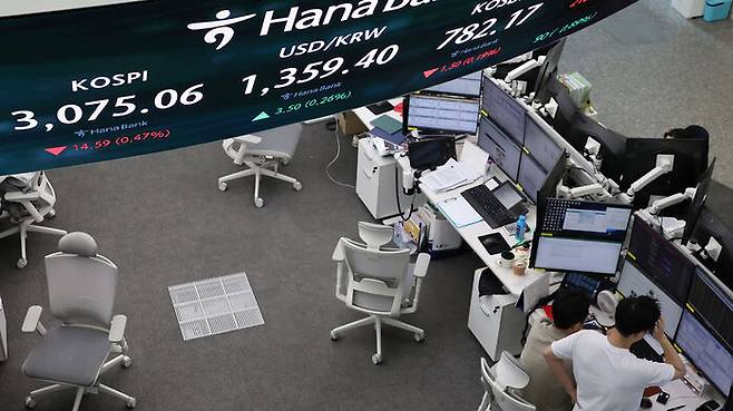 ▲ 2일 서울 중구 하나은행 본점 딜링룸 현황판에 코스피 지수가 표시돼 있다.