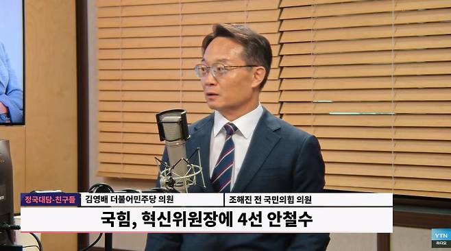■조해진: 그런데 김용태 비대위원장은 인적 청산까지는 이야기 안 할 그 전 단계까지만 이야기했는데도 거부해 버렸잖아요. 그런데 안철수 의원도 혁신위 맡아서 앞으로 할 때 그게 제일 고민일 겁니다. 당원과 국민이 공감할 수 있는 혁신안을 내놓아야 되는데 당 주류가 그걸 받아들일 수 있을 것인가. 이거죠.
