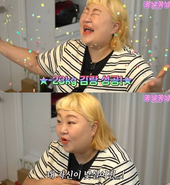 한편 40kg 감량을 목표로 다이어트 중이라고 밝힌 코미디언 홍윤화는 최근 20kg 넘게 감량에 성공하며 홀쭉해진 근황을 자랑했다.