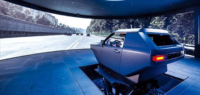 1층에는 UX 테스트 존과 SDV(소프트웨어중심차) 존, UX 아카이브 존 등이 마련돼 있다. SDV 존에서는 현대차그룹의 차세대 인포테인먼트 시스템 ‘플레오스 커넥트’를 체험할 수 있다. 2층은 시뮬레이션 룸, 피처 개발 룸, UX 라운지 등으로 구성된다. 2일 현대차 직원이 시뮬레이션 룸에 있는 730개의 발광다이오드(LED) 모듈이 들어간 대형 커브드 디스플레이 앞에서 실제 주행 환경을 구현해 UX를 검증하고 있다.