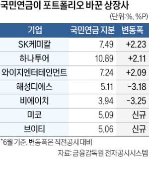 반면 전자부품·2차전지 기업은 여럿 덜어냈다. 지난달엔 연성인쇄회로기판 등을 제작하는 비에이치 지분율을 7.19%에서 3.94%로 대폭 줄였다. 패키지 기판 기업 해성디에스는 지난 5월 중순부터 지난달까지 약 54만 주를 팔아 지분율을 8.29%에서 5.11%로 낮췄다. 삼성SDI 지분율은 7.88%에서 6.87%로 줄였다. 엘앤에프와 에코프로머티리얼즈 지분율도 각각 1%포인트 안팎으로 줄여 지분 5% 미만을 보유하게 됐다.