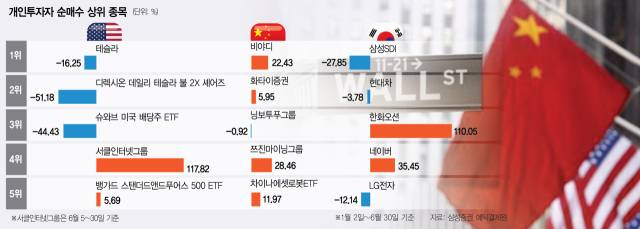 2일 예탁결제원과 삼성증권에 따르면 올 상반기(1~6월) 미국 주식 투자자의 순매수 상위 5개 종목 중 3개 종목이 마이너스 수익률을 보였다.