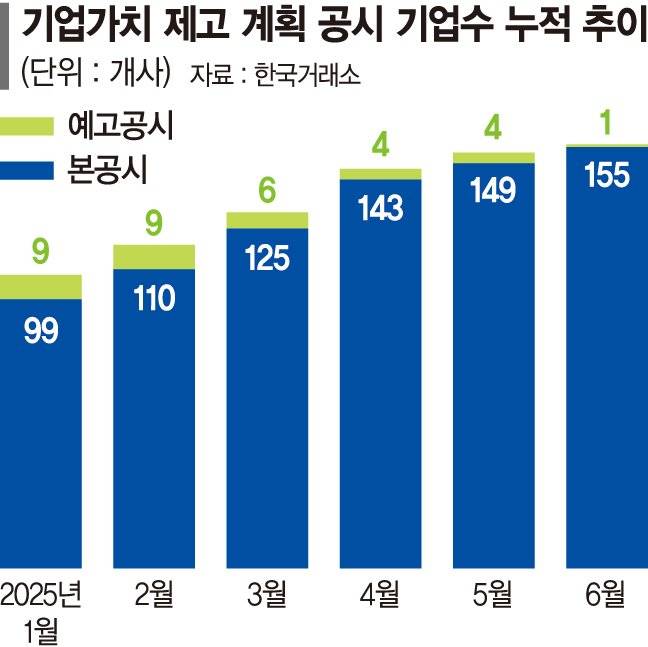 밸류업 공시 시행 이후 지난달까지 총 156개사의 상장사가 기업가치 제고계획 공시에 참여한 것으로 나타났다.