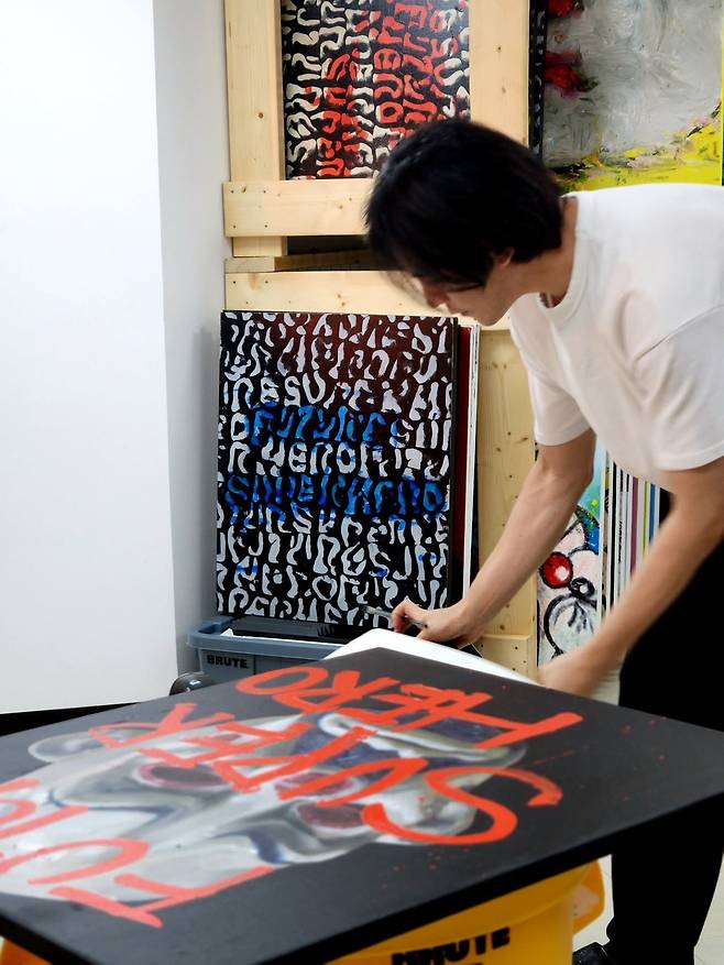 그는 "이번 전시는 작가 생활 중 처음으로 조형 작품을 선보이는 자리다. 인테리어를 하시던 아버지, 그리고 어릴 적부터 저보다 미술적 재능이 더 뛰어났던 동생과 함께 8개월 넘게 고민하며 만든 조형 작업"이라고 설명하며 "'아빠, 아들 잘했지?' 하고 떳떳이 보여드리고 싶다"고 설명했다.