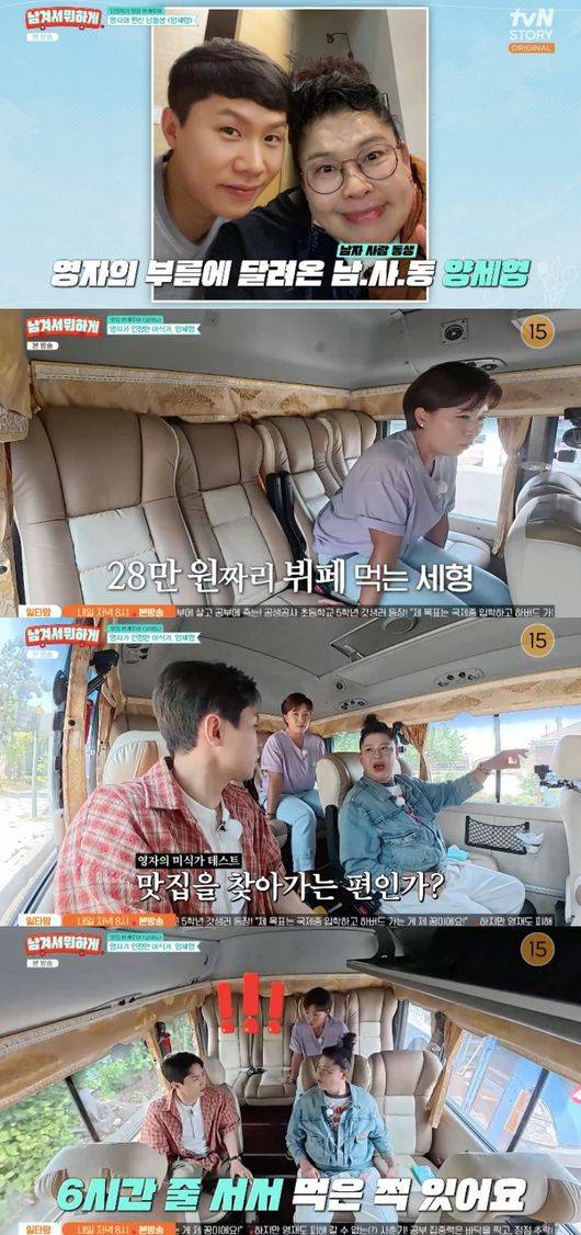 또 이영자는 “오늘 세형이를 부른 이유도 세형이 미식기다. 외투는 4만 원짜리 입어도 28만원 짜리 뷔페 먹는다”라고 밝혔다. 이에 양세형은 “맛집 찾아간다. 6시간 줄 서서 먹은 적도 있다. 예전에 냉삼 한창 유행할 때 잠X교집 갔다. 완전 빵 터졌을 때 그때 본점 가서 줄 섰다”라고 일화를 전했다.