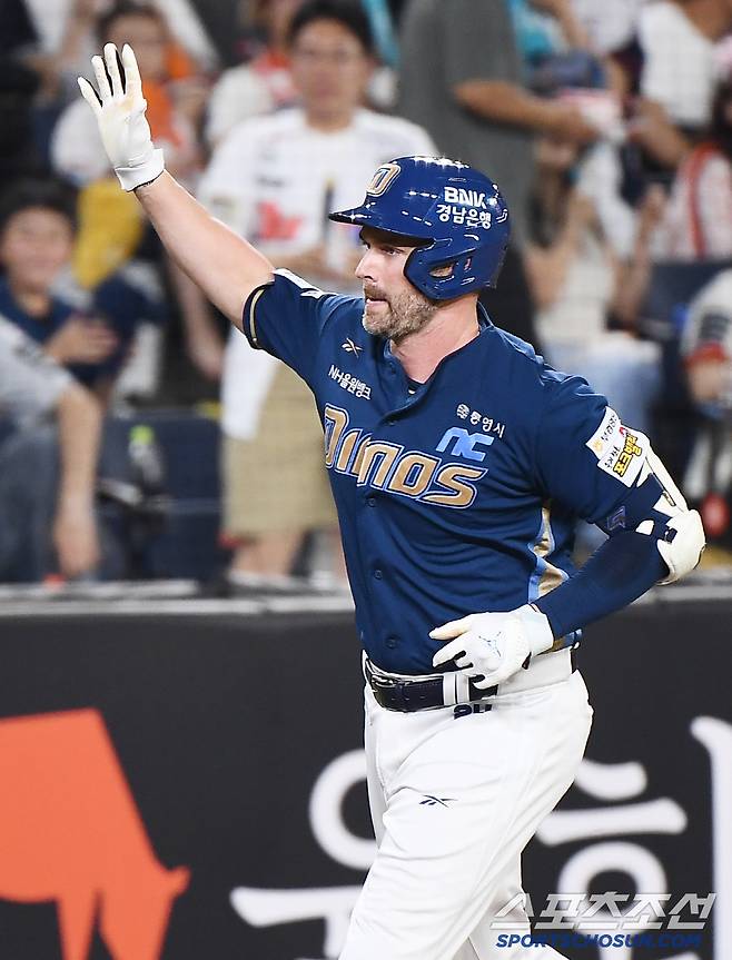 2일 대전 한화생명볼파크에서 열린 NC-한화전. 7회초 1사 데이비슨이 솔로포를 친 후 환호하고 있다. 대전=정재근 기자 cjg@sportschosun.com/2025.7.2/