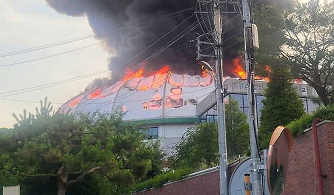 불이 나자 구리시청은 "다량의 연기 발생 중으로 주변 시민들께서는 현장 접근금지, 주변 통행 차량 우회하기를 바란다"는 내용의 안전 문자를 전송했습니다.