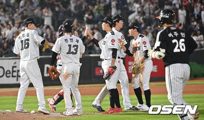 롯데 자이언츠 선수들이 LG 트윈스에 5-2로 승리한 후 기쁨을 나누고 있다. 2025.07.02 / foto0307@osen.co.kr
