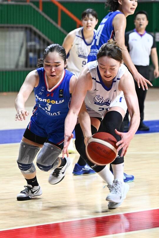 인천 신한은행은 2일 부산 사직실내체육관에서 열린 2025 티켓링크 WKBL 퓨처스리그 in 부산 A조 예선 경기에서 몽골 여자농구 국가대표팀을 84-33으로 꺾었다. 첫 승을 신고했다.