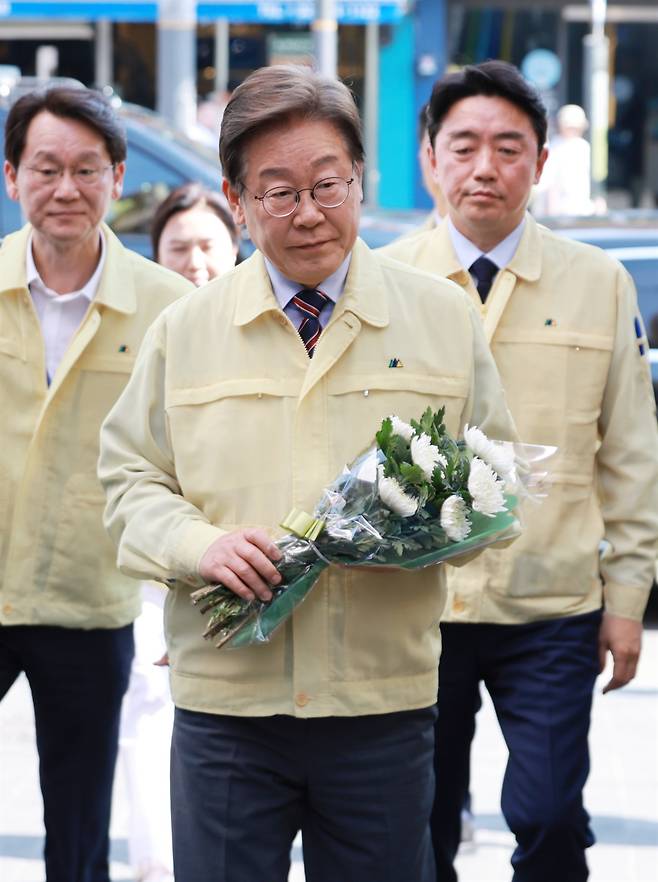 | ▲ 이재명 대통령이 12일 서울 용산구 이태원 참사 현장 '10·29 기억과 안전의 길'에서 헌화를 위해 이동하고 있다. 2025.6.12 |