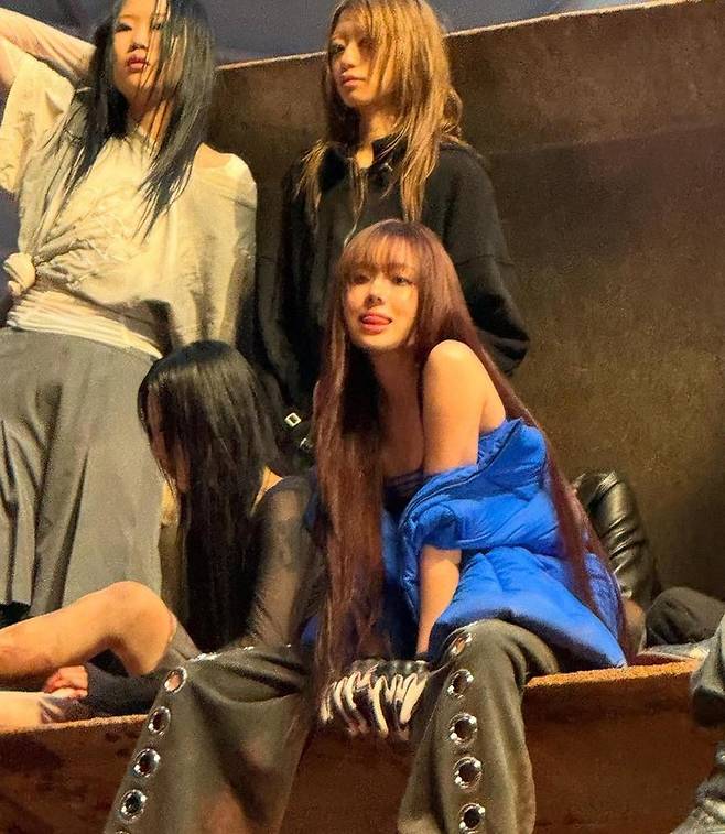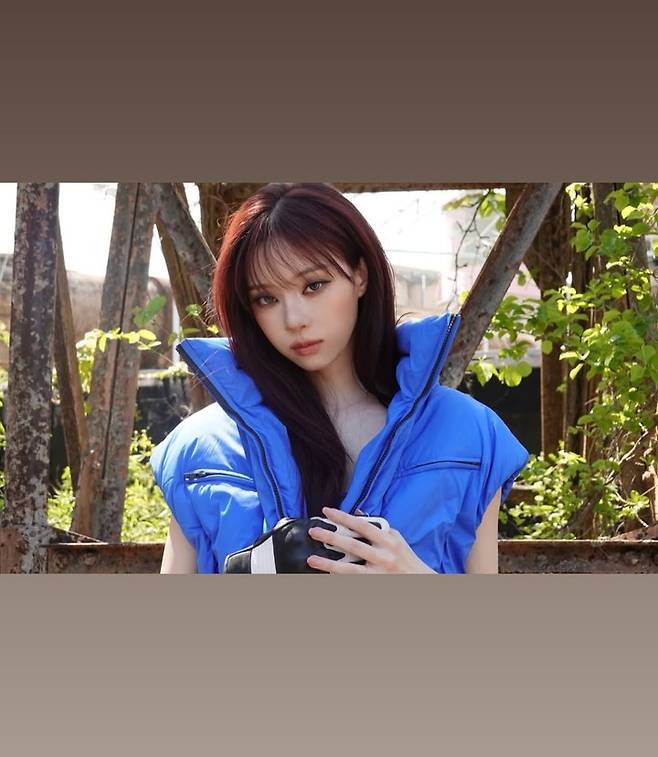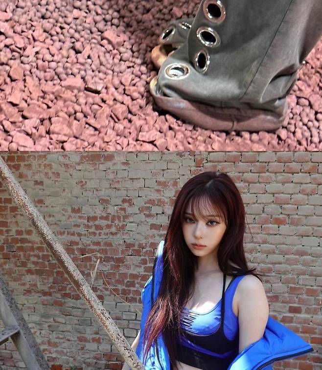 윈터는 산업적인 배경과 함께 다양한 스타일을 소화하며 눈길을 끌었다. 밝은 벽돌 외벽으로 이뤄진 야외 공간을 배경으로, 청량한 블루 톤의 크롭 상의와 재킷을 매치해 차분하면서도 세련된 스타일을 선보였다.