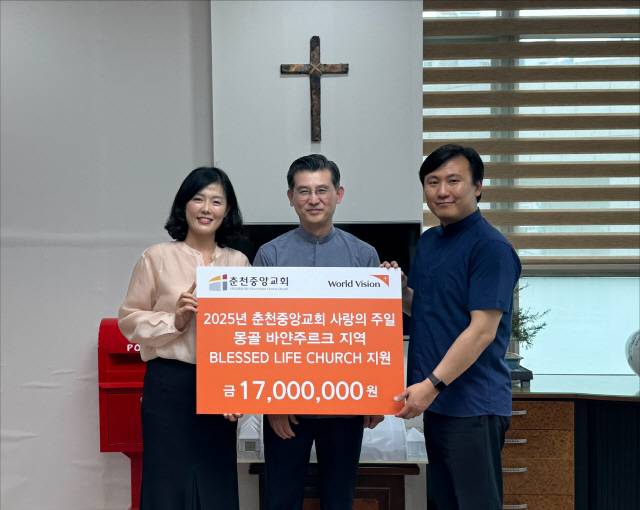 춘천중앙감리교회(담임목사 심성수)는 최근 교회에서 사랑의 주일 행사를 통해 모아진 성금 1700만 원을 월드비전 강원사업본부(본부장 신재권)에 전달했다.