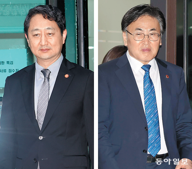 | 내란특검, 안덕근-유상임 줄소환 2일 안덕근 산업통상자원부 장관이 내란 특검 조사를 마친 뒤 서울 서초구 서울고검 청사를 나서고 있다(왼쪽 사진). 같은 날 조사를 받은 유상임 과학기술정보통신부 장관이 청사를 떠나는 모습. 홍진환 기자 jean@donga.com |