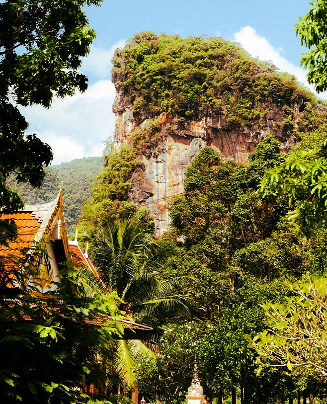 태국 문화에서 코끼리는 왕실, 힘, 지혜의 상징이다. 우리나라의 호랑이처럼 민족 수호령 같은 느낌도 있다. 그런 '코끼리님'이 자연 속에 몸을 뉘인 듯한 형상을 하고 있으니, 카오 창은 단순한 산 그 이상의 신성함을 지닐 수밖에 없다. 산 내부에 나 있는 천연 석회암 동굴인 탐 푸웅 창(Tham Phung Chang) 탐방 역시 코끼리의 배 속으로 들어가는 신성한 체험으로 여겨진다.