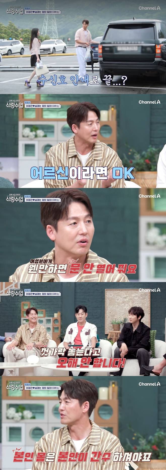 이에 이승철은 "아직까지는 선생님인가. 소개팅이 아니니까"라고 말했고, 이정진은 "처음 봤을 때도 어르신이거나 도움이 필요한 물건이 있으면 당연히 해드린다. 그런데 여성분은 웬만하면 문을 안 연다"라고 전했다.