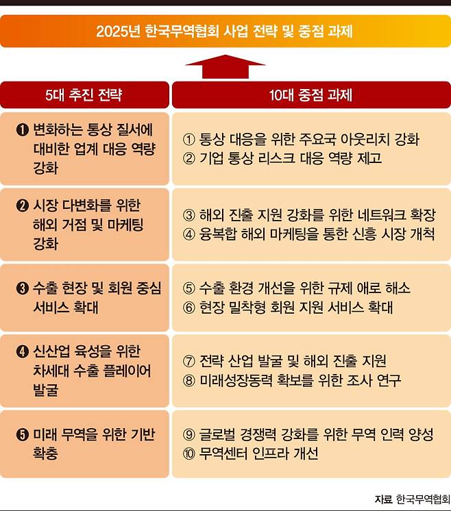 무역협회는 윤진식 회장 취임 2년 차인 올해 초 조직개편을 통해 무역진흥본부 산하에 ‘지속성장지원실’을 신설하고, ESG·공급망·디지털 전환 등 신통상 이슈 대응 역량을 대폭 강화했다. 동시에 무역 관련 싱크탱크인 국제무역통상연구원 내 ‘신무역전략실’을 신설하고 그 밑에 ‘그린·공급망 파트’를 만들었다. 이를 통해 ESG를 단순한 윤리적 기준이 아닌 수출 전략의 핵심 요소로 위치시켰다. 특히 유럽연합(EU)의 탄소국경조정제도(CBAM) 같은 환경규제의 급격한 변화에 발맞춰 실효적 정보 제공과 현장 중심의 지원사업을 추진 중이다.