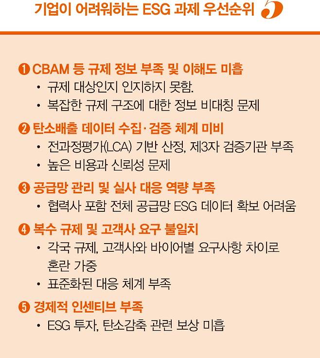 국내 수출기업들은 ESG가 중요하다는 것은 알지만, 어떻게 대응해야 할지 혼란스러워하고 있다. 코앞으로 다가온 CBAM 시행을 앞두고 대응 방안을 몰라 혼란이 가중되고 있다.