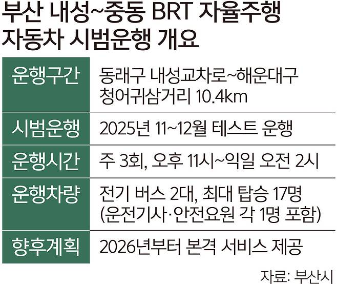 부산, 11월부터 ‘심야 자율주행버스’ 씽씽