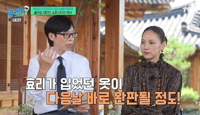 유재석은 당시 이효리의 영향력을 언급하며 "이효리가 입었던 옷이 다음날 바로 완판될 정도"라고 했고, 이효리는 "지금의 제니 같았던 거다. 저 전엔 엄정화 언니가 있었고"라고 전했다.