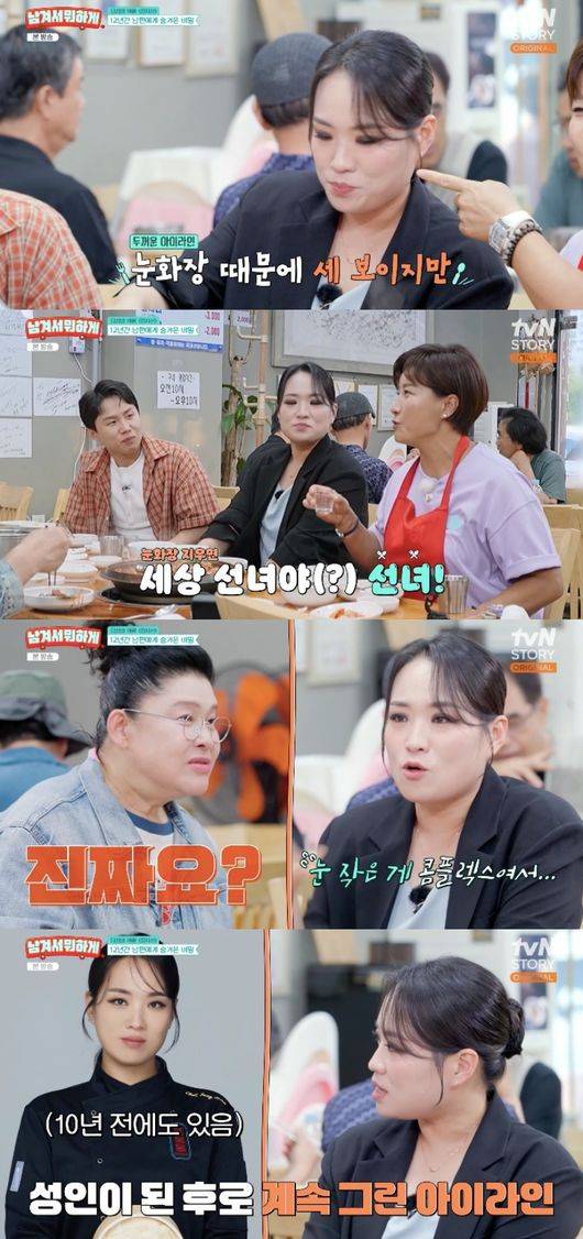 이날 이영자는 정지선에게 “인상은 강한데 알고보면 그렇게 순한 애가 없다고 하더라”라고 말했다. 박세리는 “거절 못한다. 포인트 눈화장 때문에 엄청 세보이는데 이거 지우면 세상 선녀다”라고 귀뜸했다.