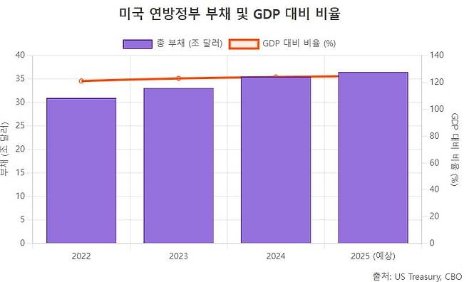 5월 16~22일에는 다시 국채 금리가 뛰었다. 0.30% 포인트 높아져 금리는 약 4.6%를 찍었다. 신용평가사 무디스가 미국 국가신용등급을 AAA→Aa1으로 강등 발표한 영향이 크다. 무디스는 미국 국채의 누적 규모와 관련 이자 비용 급증을 지적했다. 미국 의회에서 논의된 대규모 감세·지출 법안이 재정 적자를 악화시킬 것이라는 전망도 나왔다.