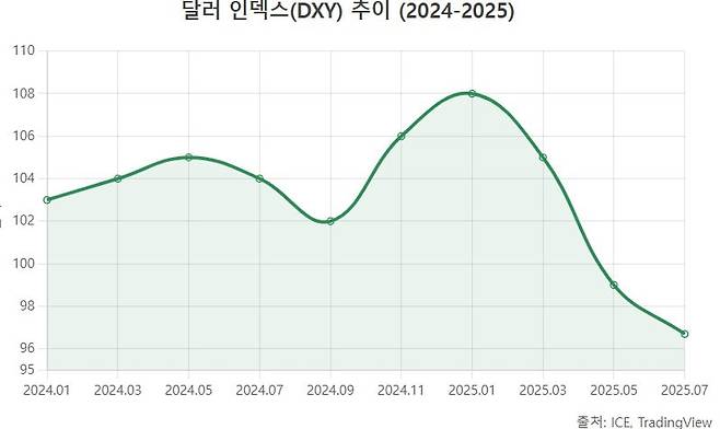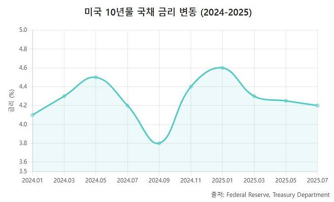 미국 국채 10년물 금리가 움직일 때 다양한 자산군과 시장에서 연쇄 반응이 나타난다. 보통 미국 채권의 금리 상승은 달러화 강세 요인으로 작용한다. 미국 자산(채권)의 금리 매력이 높아져 글로벌 자금이 달러로 유입되고, 달러 가치가 오르는 경향이 있기 때문이다. 반대로 국채 금리가 하락하거나 Fed가 금리 인하로 돌아설 전망이 나오면 달러 강세가 약해진다.