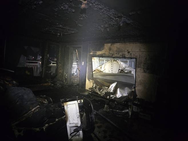 거실과 베란다 앞부분에 심하게 그을린 자국이 남아있는 것으로 알려졌다.