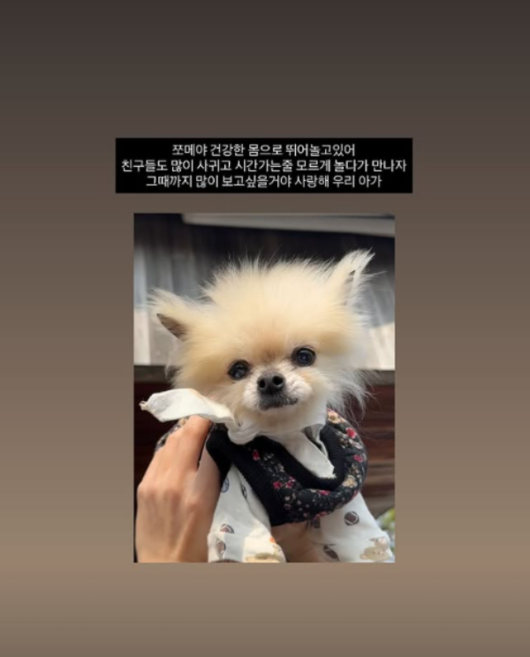 2일 이수현은 자신의 소셜에 "쪼메야 건강한 몸으로 뛰어놀고 있어"라며 한 장의 사진을 업로드 했다.