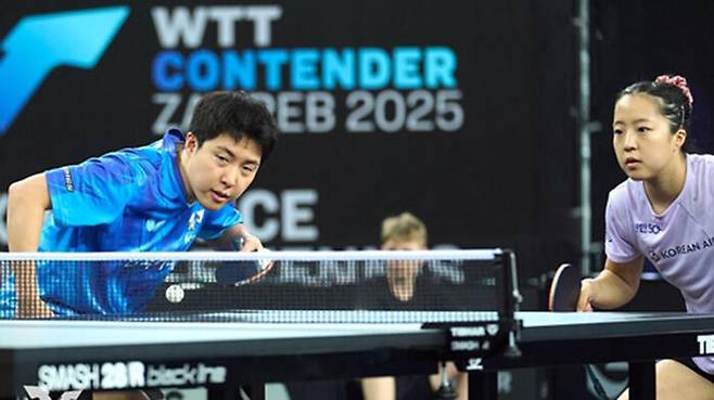 ▲ WTT 자그레브 혼합복식에 출전한 임종훈(왼쪽)과 신유빈