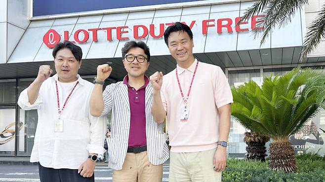 ▲ 롯데면세점 제주점 김정우 대리, 윤남호 제주공항점 점장, 제주점 김동진 사원