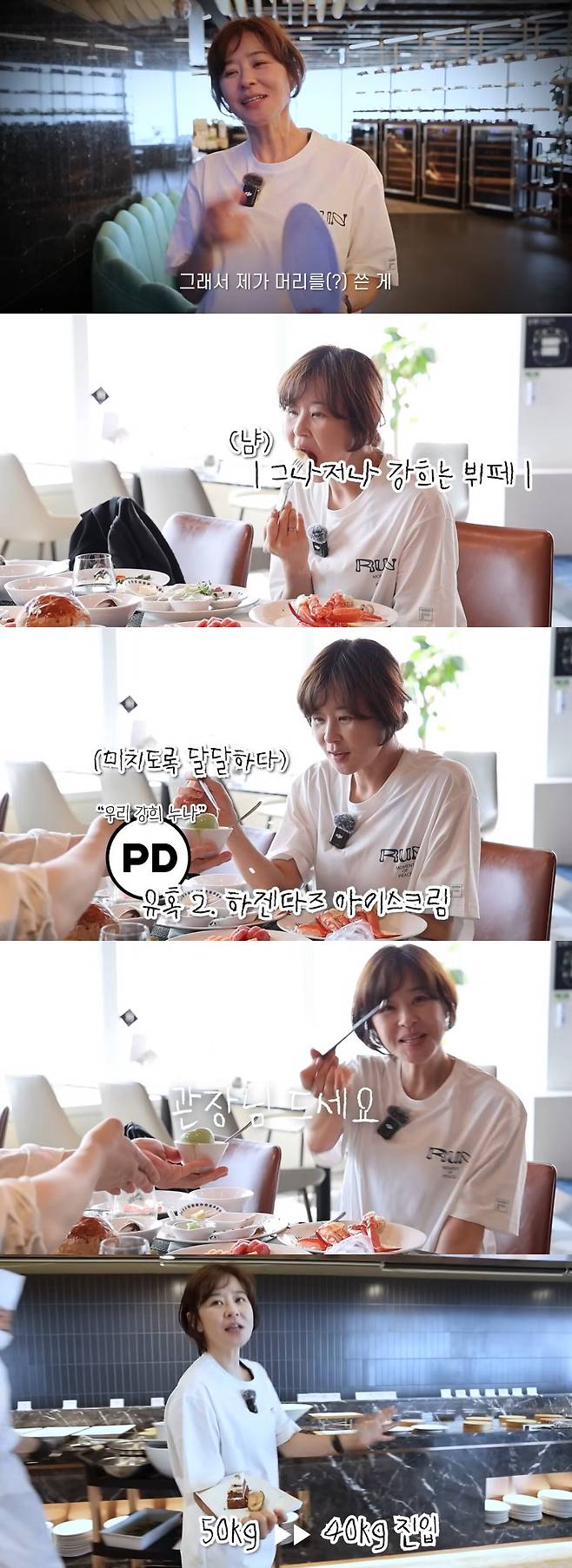 영상에서 최강희는 "맛있는 거 먹고 싶은데 살찌는 거 먹으면 안 되지 않냐. 그래서 내가 머리를 쓴 게 해산물 뷔페에 왔다"고 말했다.