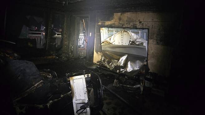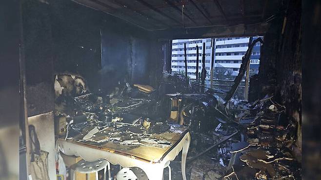 거실과 발코니 앞부분에 심하게 그을린 자국이 남아있는 것으로 알려졌습니다.