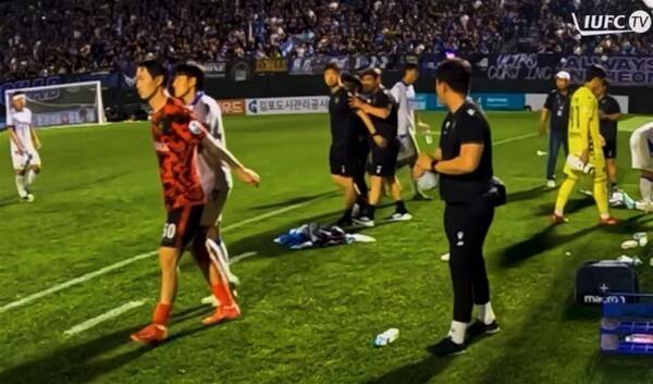 전반 36분 조성준이 선제골을 터트리며 기분 좋게 포문을 연 김포지만, 전반 추가시간 6분 문지환에게 동점골을 내줬고 결국 양 팀은 승점 1점을 나눠 가지게 됐다. 올 시즌 K리그2 1강 인천을 상대로 승점을 챙긴 김포지만, 웃을 수 없었다. 경기 후 벌어진 사건 때문이다.