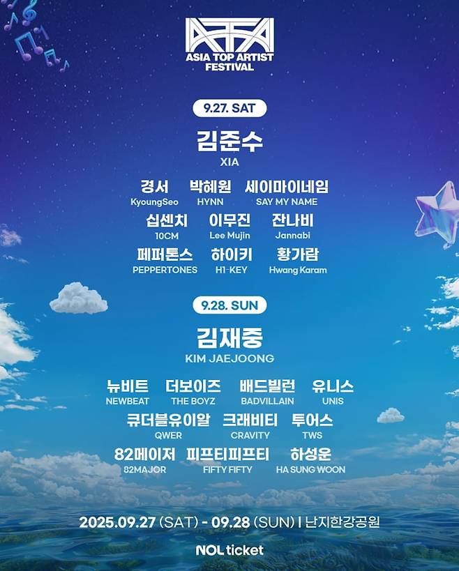 9월 한강변 달굴 'ATA 페스티벌' 준수·재중 출격…오후 6시 티켓 오픈