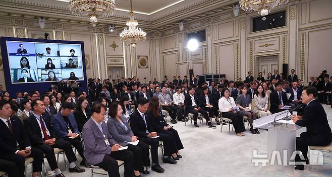 [서울=뉴시스] 고범준 기자 = 이재명 대통령이 3일 청와대 영빈관에서 열린 '대통령의 30일, 언론이 묻고 국민에게 답하다' 기자회견에서 발언하고 있다. (대통령실통신사진기자단) 2025.07.03. bjko@newsis.com
