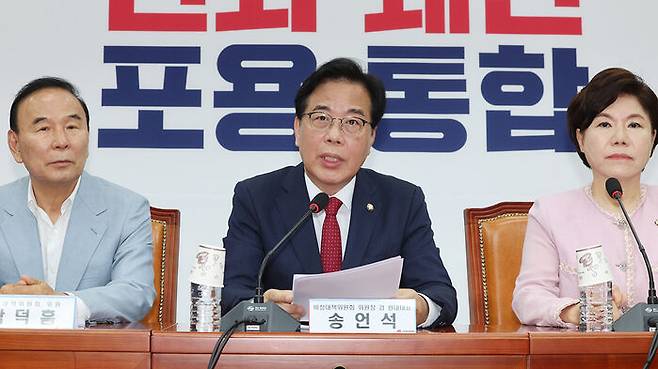 ▲ 국민의힘 송언석 비상대책위원장 겸 원내대표가 3일 서울 여의도 국회에서 열린 비상대책위원회의에서 발언하고 있다.