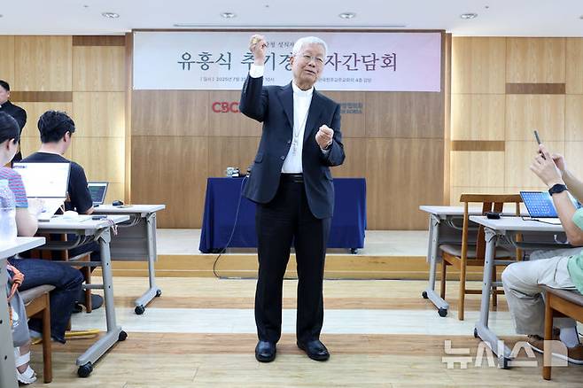 [서울=뉴시스] 박진희 기자 = 교황청 성직자부 장관 유흥식 추기경이 3일 서울 광진구 한국천주교주교회의에서 방한 기자간담회를 하고 있다. 2025.07.03. pak7130@newsis.com