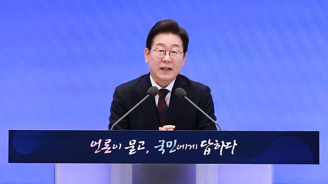 ▲ 이재명 대통령이 3일 청와대 영빈관에서 열린 '대통령의 30일, 언론이 묻고 국민에게 답하다' 기자회견에서 인사말을 하고 있다.
