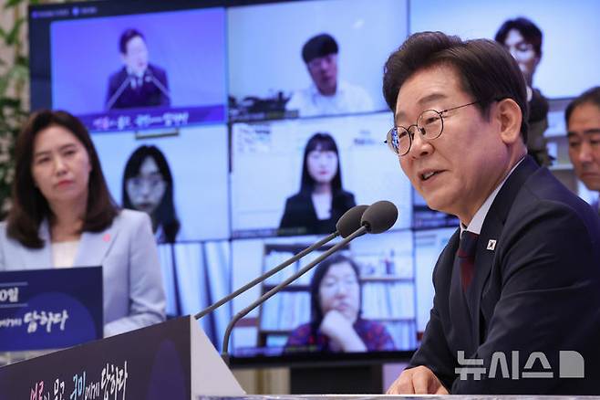 기자 질문에 답하는 이재명 대통령