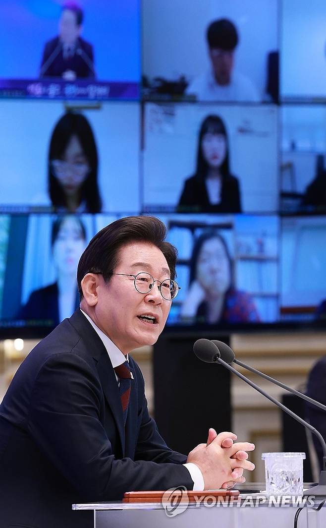 (서울=연합뉴스) 한상균 기자 = 이재명 대통령이 3일 청와대 영빈관에서 열린 '대통령의 30일, 언론이 묻고 국민에게 답하다' 기자회견에서 취재진 질문에 답하고 있다. 2025.7.3 [대통령실통신사진기자단]
