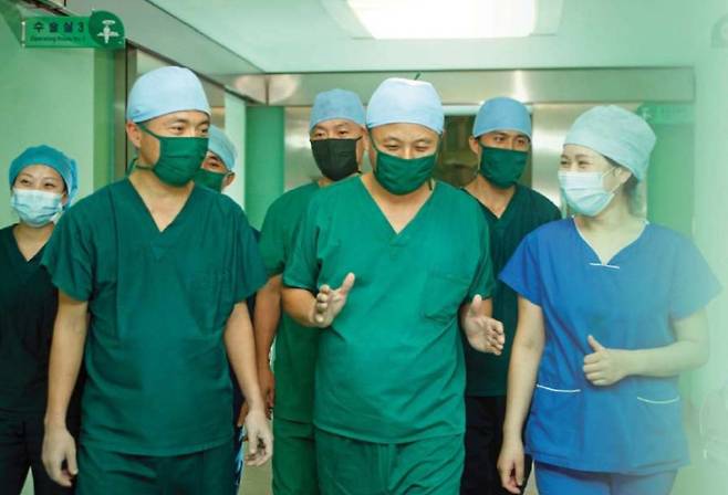 [북한 대외선전매체 '조선의 오늘'은 10일 평양 옥류아동병원 심장혈관외과 리철진 과장(가운데)을 조명했다. 매체는 평양의대 출신인 리 과장에 대해 "선천성심장기형을 비롯한 난치성심장질환으로 고통받던 많은 어린이들을 완치시킨 소아심장외과분야의 권위자"라고 소개했다. ('조선의 오늘' 홈페이지 캡처=연합뉴스)]