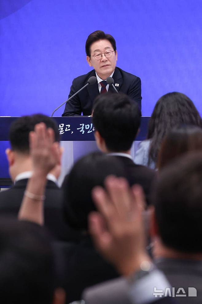 취임 첫 기자회견서 답변하는 이재명 대통령