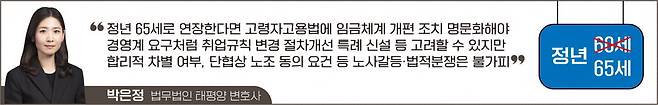 만약 법정 정년 연장이 강행된다면 고령자고용법에 임금피크제 혹은 이와 임금체계 개편 조치의 도입을 명문화하는 것이 필요하다고 생각된다. 경영계의 요구처럼 취업규칙 변경 절차개선 특례 신설을 고려할 수도 있다. 다만 법률에 따른 의무사항으로 도입되더라도 그것이 합리적 이유 없는 고령자 차별에 해당하는지는 별개의 문제이고, 단체협약에 임금체계 개선과 관련하여 노조의 동의를 받아야 한다는 조항이 있는 경우에는 노사 합의가 필요하므로, 임금체계 개선을 둘러싼 법적 분쟁이나 노사 갈등은 피하기 어려워 보인다.