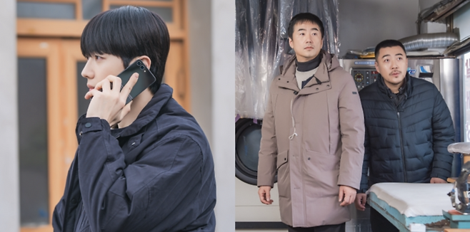 밖에서 망을 보던 막내 형사 석우는 조균의 눈을 돌리기 위해 고군분투하고, 조균은 평소처럼 사람 좋은 미소를 띠지만 그의 눈빛에는 포식자 특유의 섬뜩함이 서려 긴장감을 더한다.