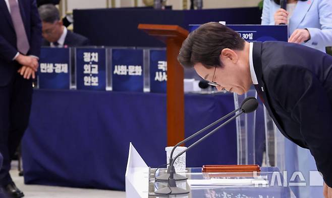 취임 30일 기자회견 마친 이재명 대통령