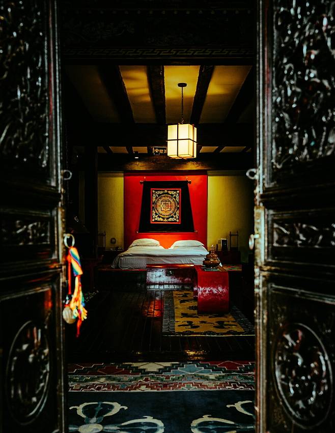 호텔을 만들기 위한 일련의 해체-재조립 과정은 호텔의 시스템을 구축하는 데 한해 극히 절제된 채로 진행되었단 걸 체감한다. 객실 안으로 발을 내딛으면 이곳에 실존했던 티베트인의 삶이 벅차게 밀려온다. 두꺼운 양모 커튼으로 창을 가려 한낮에도 그늘진 실내, 반질거리지만 걸음마다 삐걱거리는 바닥, 불단으로 쓰였을 것이 분명한 장식장. 세상을 살며 스칠 일도 없던 티베트인 '부콩(Bhucong)'씨의 집에서 홈스테이를 경험하는 것이다. 물론 반얀트리의 섬세한 설계 아래. 참고로 반얀트리 링하는 빌라 입구에 본래 소유주의 이름을 적어 놨다.